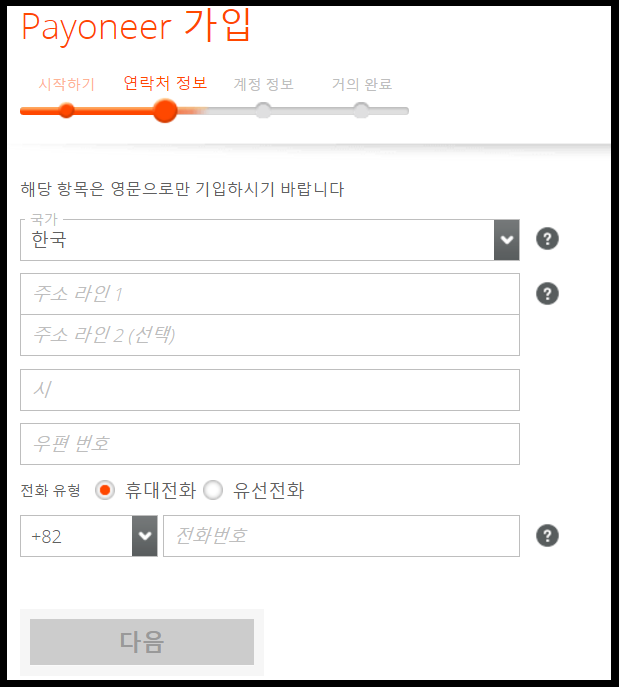 그리고 다음 버튼을 누르면, ' 연락처 정보 ' 부분이 나오죠?