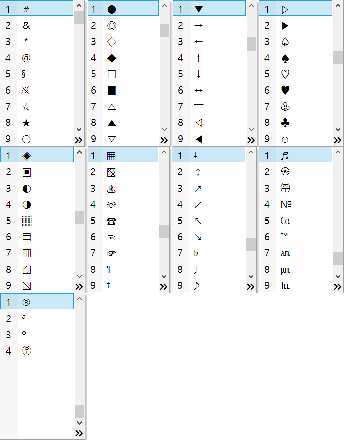 ▷▶♤♠♡♥♧♣⊙