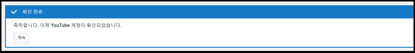 축하합니다. 이제 유튜브 계정이 확인되었습니다. 라고 뜹니다.
