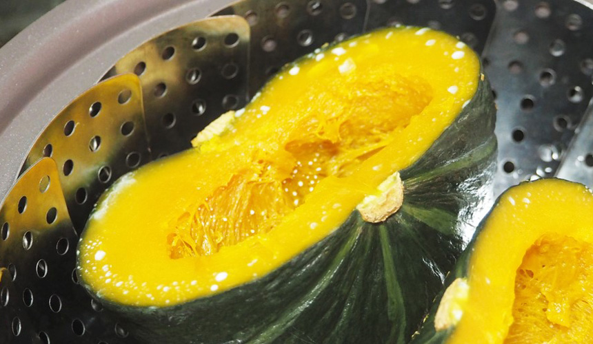 위 사진과 같이 단호박은 쪘을 때,