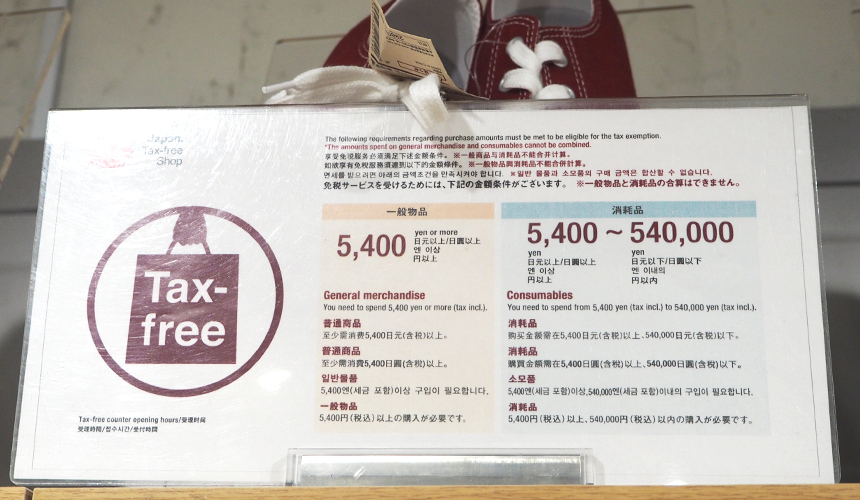 부가세(소비세)가 면제되지만, 매장에서는 세금포함 금액을 결제하고,