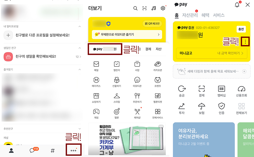 미리 카카오페이 연결계좌랑 설정해야 합니다.
