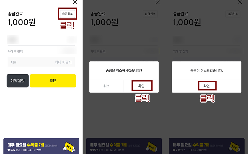 이렇게 간단하게 카카오톡 송금 취소를 진행할 수 있어요.