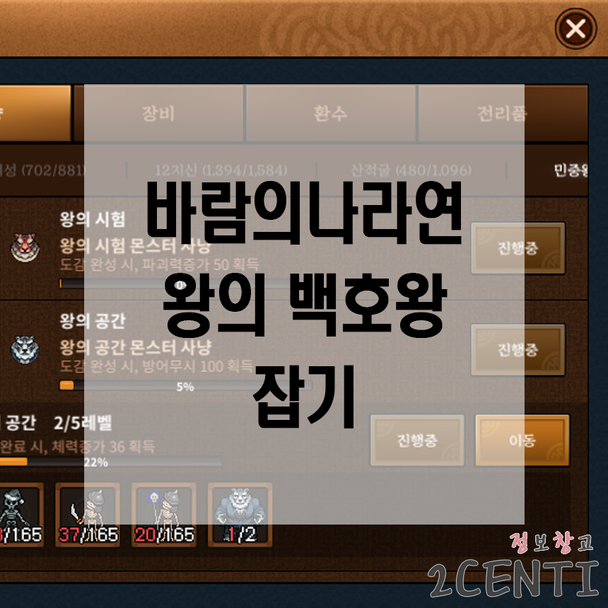 솔직히 왕의 백호왕 잡는법은 따로 어려운 게 없고, 젠 되는 위치 등만 알면 되요.