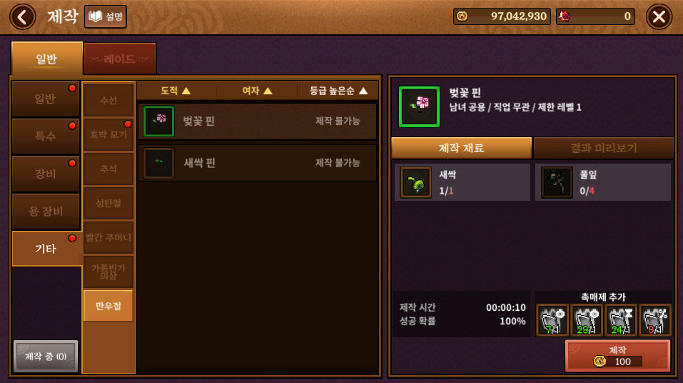 어차피 벚꽃 핀 제작확률 100%에 새싹 1개가 쓰이니 굳이 필요 하진 않을 것 같아요