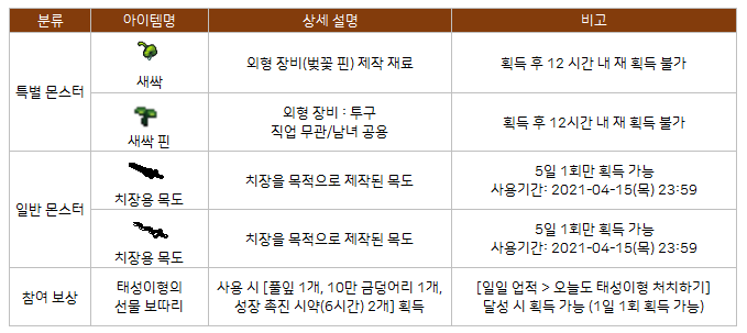 추가로 정리하자면, [태성이형] 특별 몬스터를 처치하면