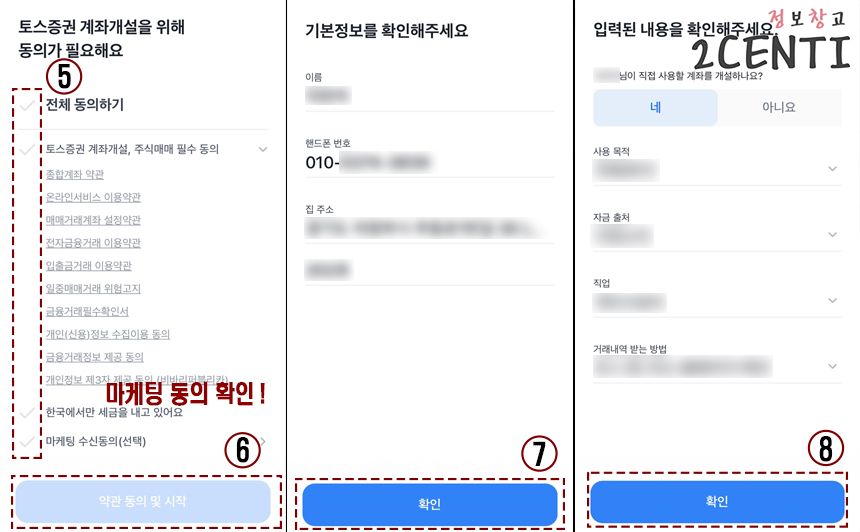 ' 토스증권 계좌개설을 위해 동의가 필요해요 ' 부분은