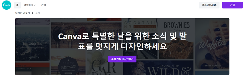 첫번째 소개해드릴 디자인 만들기 사이트는 ' 캔바 ( Canva ) ' 입니다