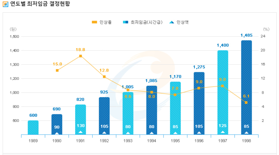 이런 경우 과거의 최저임금이나 물가를 확인해보면 이해가 쉽게 될 것입니다