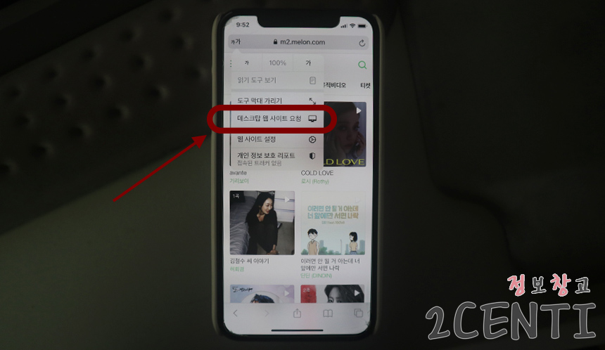 이 중 ' 데스크탑 웹 사이트 요청 ' 칸을 눌러주세요