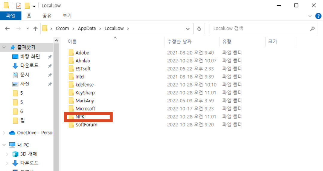 그럼 많은 폴더 중 ' NPKI ' 폴더 선택해주세요