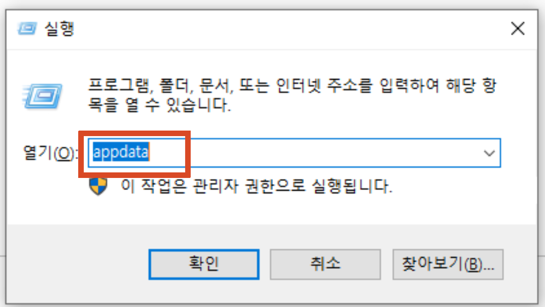 여기서 ' appdata ' 라고 입력해주시면 됩니다 !