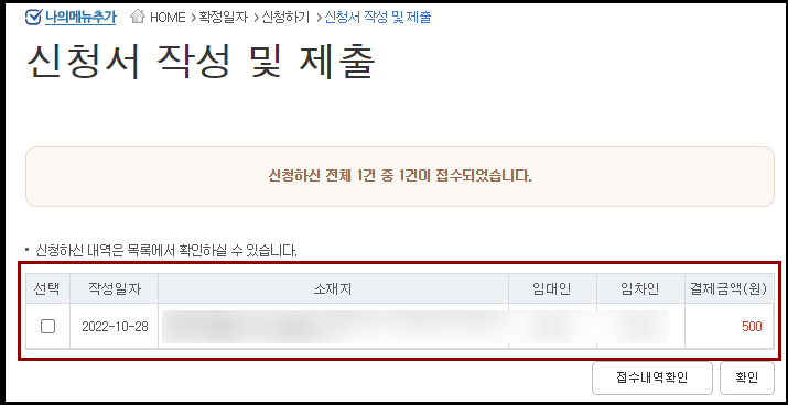 제출완료가 나오면 말그대로 확정일자 신청서 제출이 된거고,
