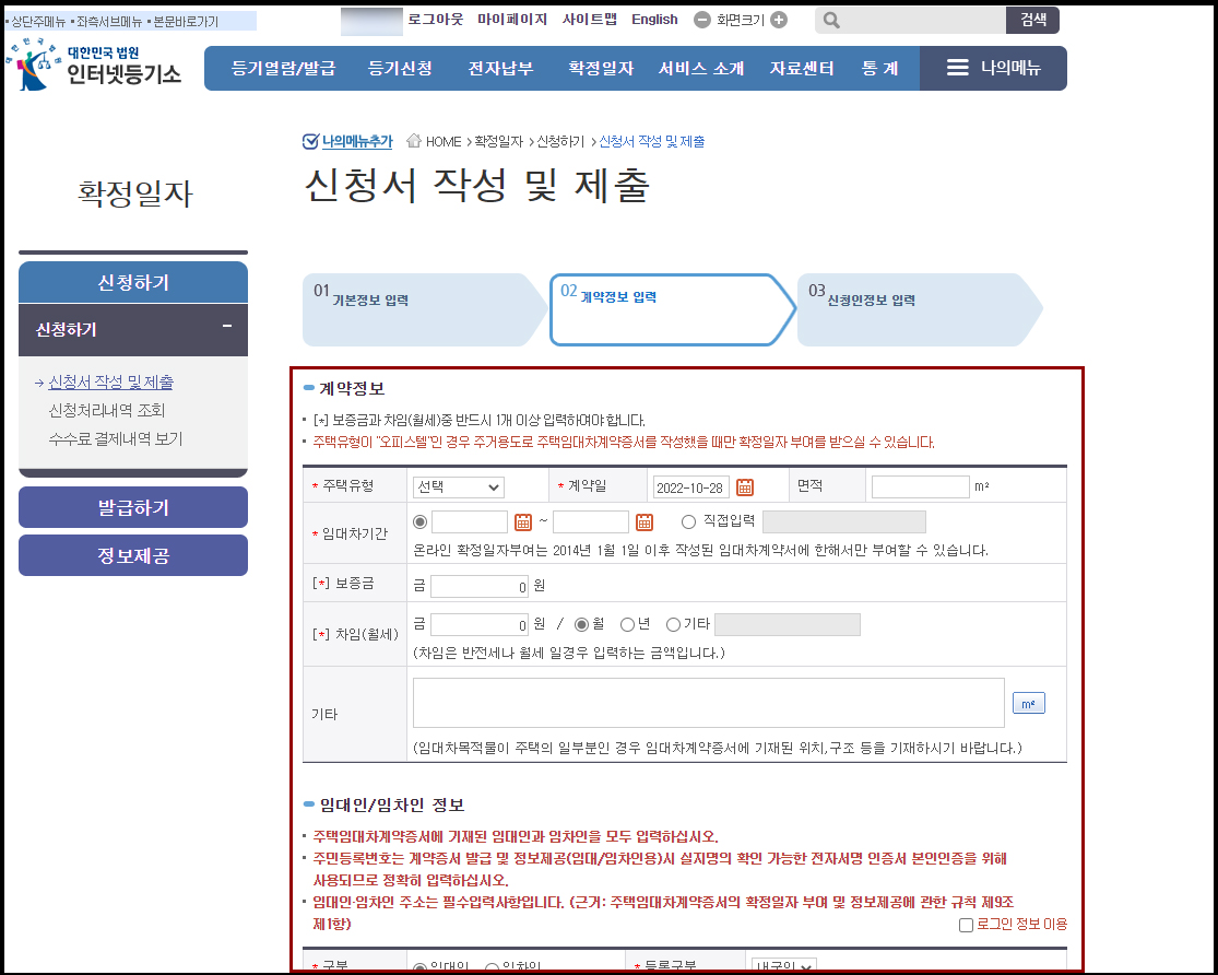 그리고 확정일자 받기 위해 신청을 해주셔야 합니다