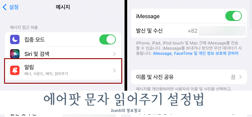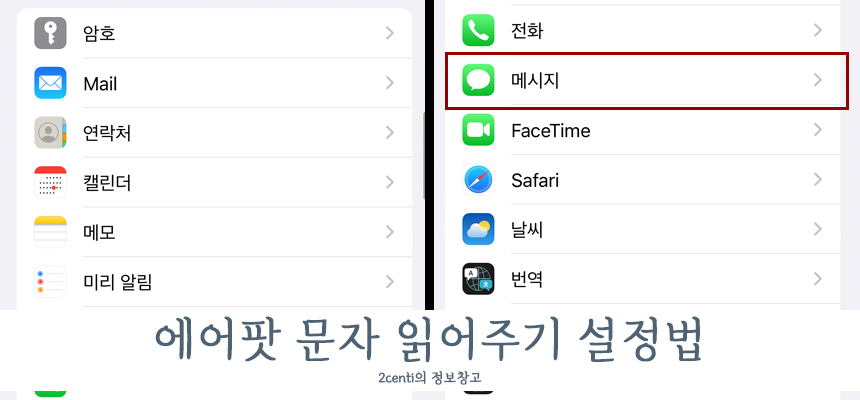 이래서 제가 에어팟을 사용했을 때, 문자 메세지를 자꾸 읽어줬던 거에요 ㅠ