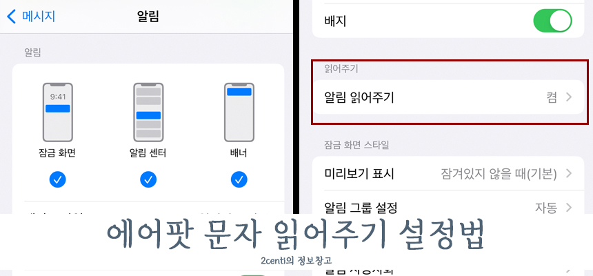 에어팟 문자 읽어주기 끄는 법과 켜는 법 모두 알 수 있도록 내용 캡처하여 준비했어요