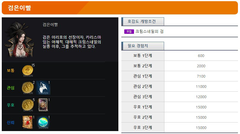 검은이빨 호감도 올리기 좋은 영웅 호감도 아이템