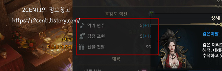 우호 2단계에서 감정표현, 음악연주, 선물하기 아무것도 할 수 없습니다