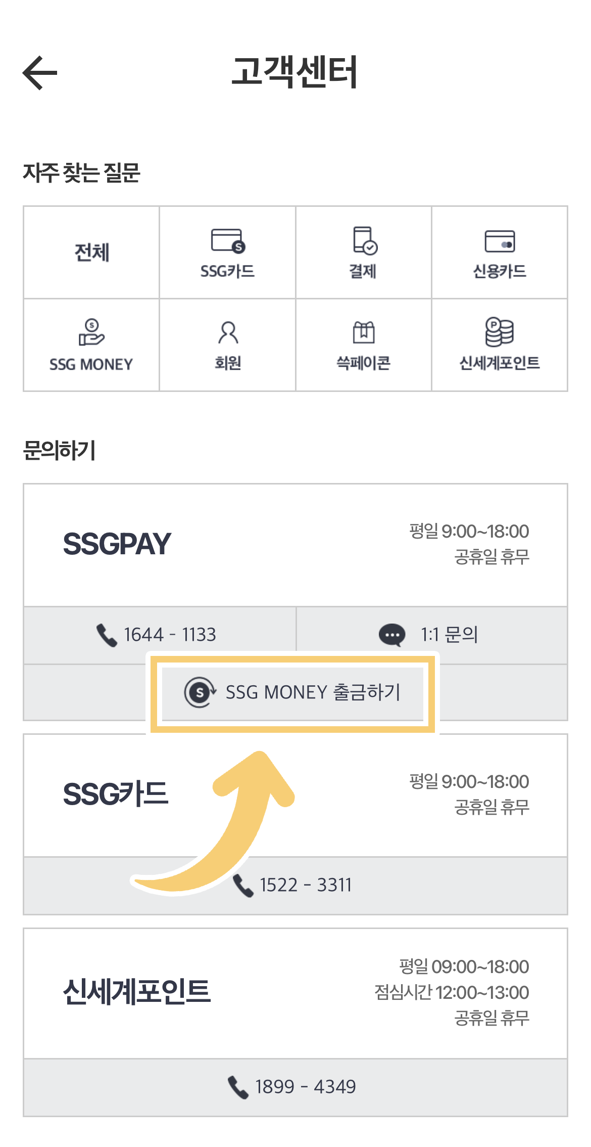 SSG MONEY ( 신세계 머니 ) 출금하기 버튼을 확인하실 수 있어요~